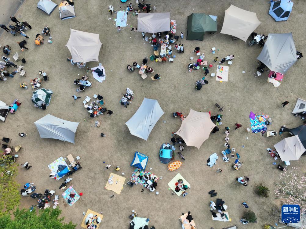 1月2日,在福州闽江之畔的闽侯法治廉政文化公园,游人在户外草坪休闲度假(无人机照片)。