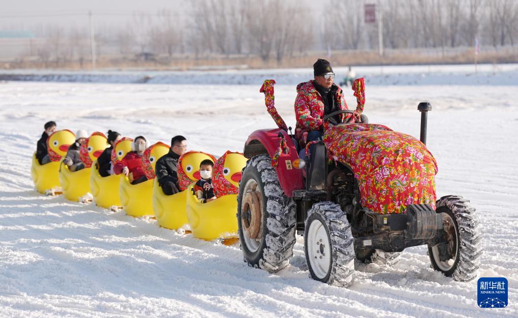 1月3日,人们在宁夏银川市贺兰县的稻渔空间冰雪乐园体验冰雪游乐项目。