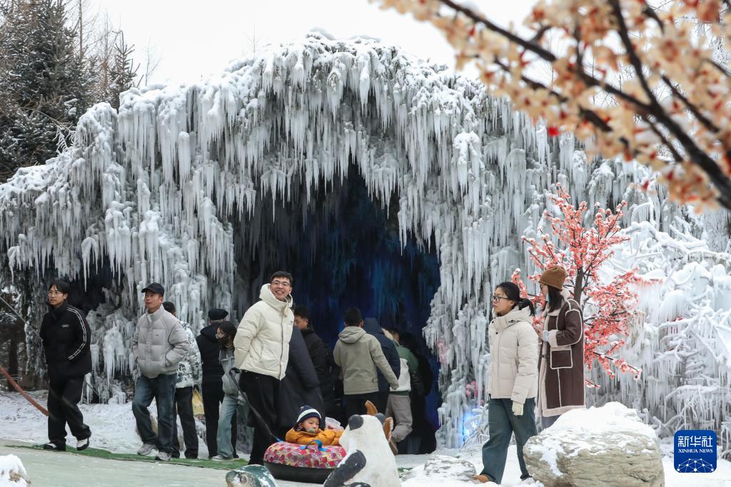 1月2日,游客在甘肃省临夏回族自治州和政县法台山景区游览“冰凌谷”景观。