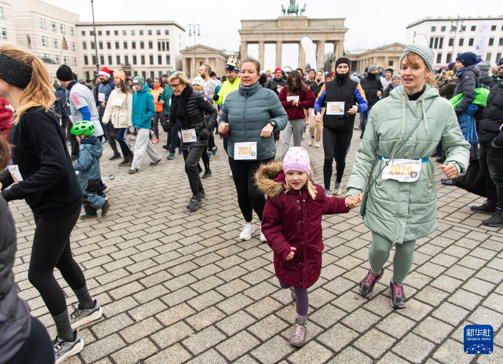 2026年1月1日,人们在德国首都柏林的勃兰登堡门附近参加新年跑活动。