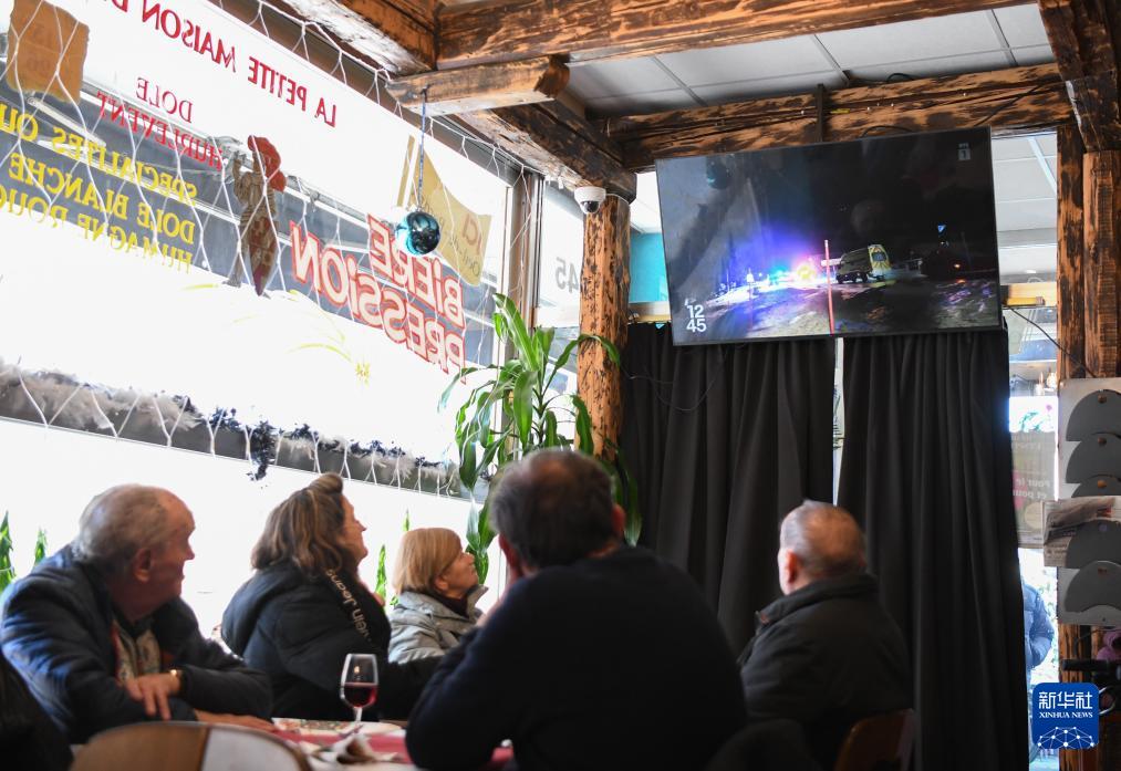 2026年1月1日,在瑞士日内瓦,人们在一家酒吧观看报道瓦莱州酒吧爆炸的电视画面。