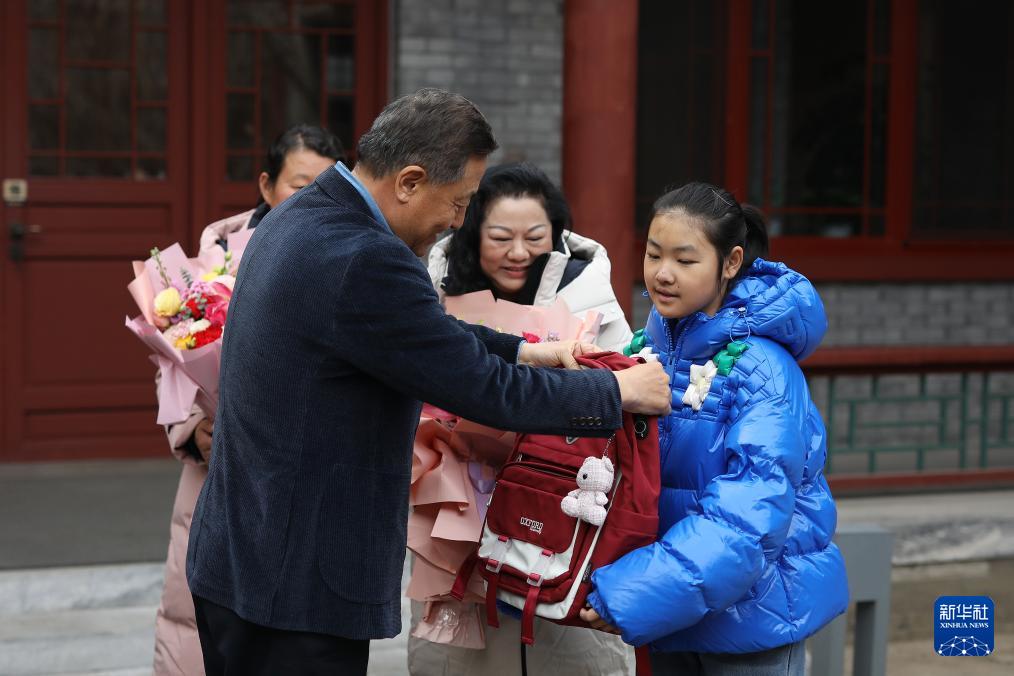 1月4日,中华英烈褒扬事业促进会会长李中水给“人民英雄”张超烈士女儿张上明珠送上节日慰问品。