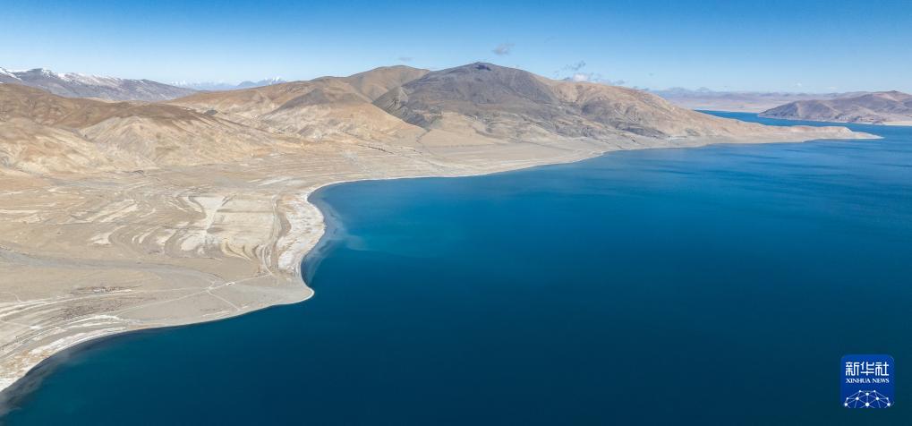 时值冬季,佩枯错的蔚蓝湖水与巍峨雪山相映成趣,构成一幅美丽的自然画卷。