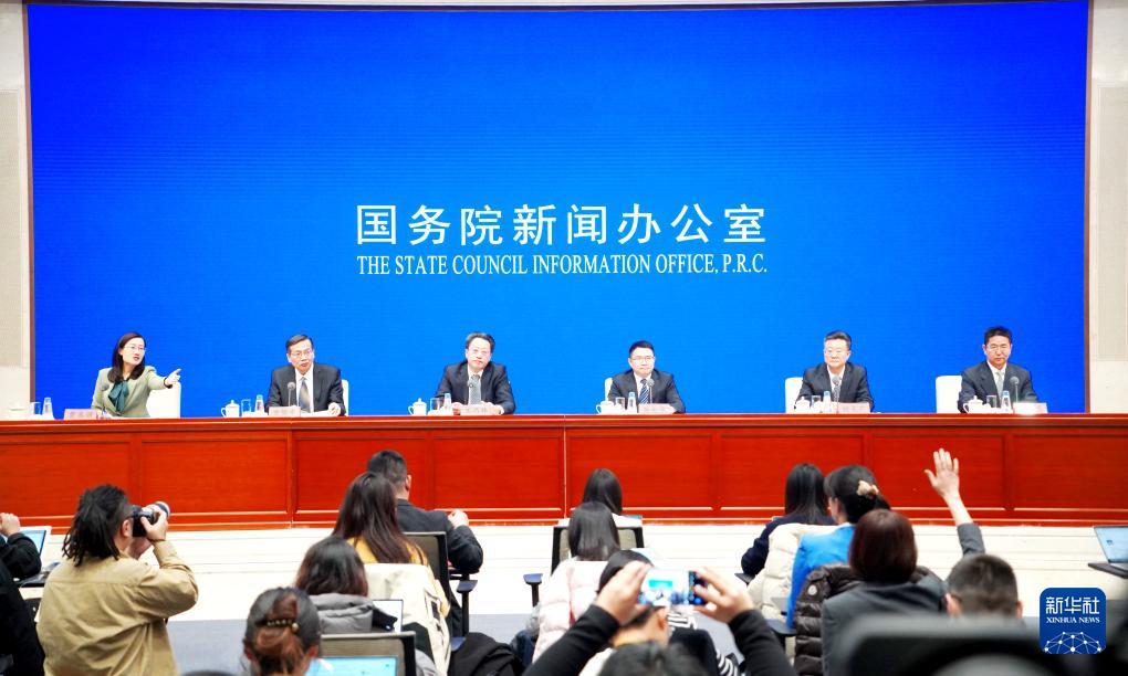 1月5日,国务院新闻办公室在北京举行新闻发布会,国家发展改革委副主任王昌林、生态环境部水生态环境司司长蒋火华、交通运输部综合规划司负责人金敬东、水利部水旱灾害防御司司长姚文广、农业农村部长江流域渔政监督管理办公室主任江开勇介绍长江经济带发展十年工作进展和成效,并答记者问。新华社记者 潘旭 摄