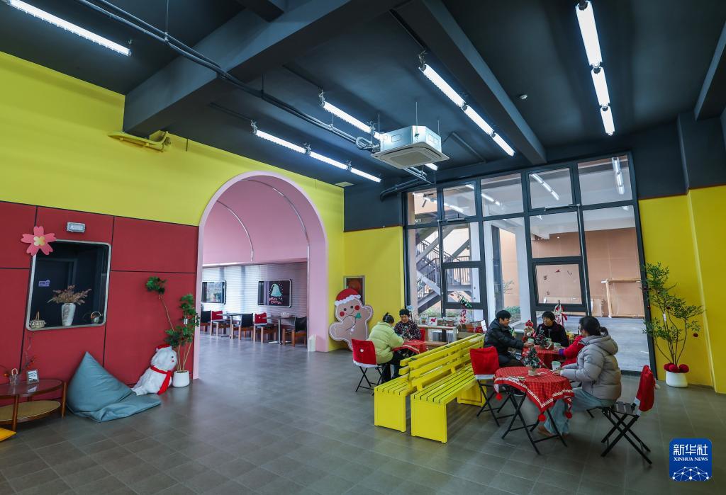 1月6日,村民在长兴县吕山乡胥仓村农事服务中心的咖啡屋内休息、喝咖啡。