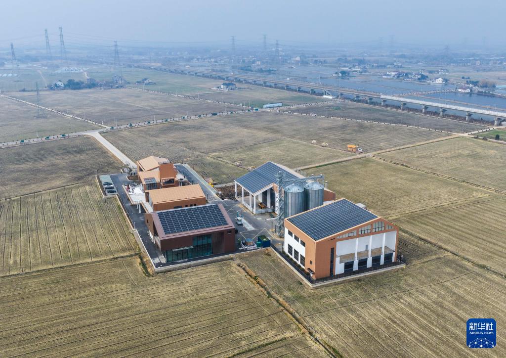 这是位于长兴县吕山乡胥仓村的农事服务中心,该农事服务中心是湖州市首批绿色农田示范区试点(1月6日摄,无人机照片)。