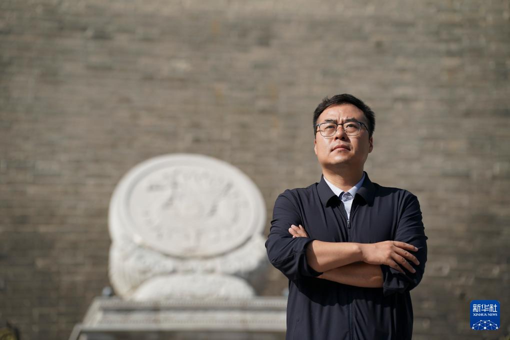 赵彬在西安城墙永宁门内(2025年9月12日摄)。