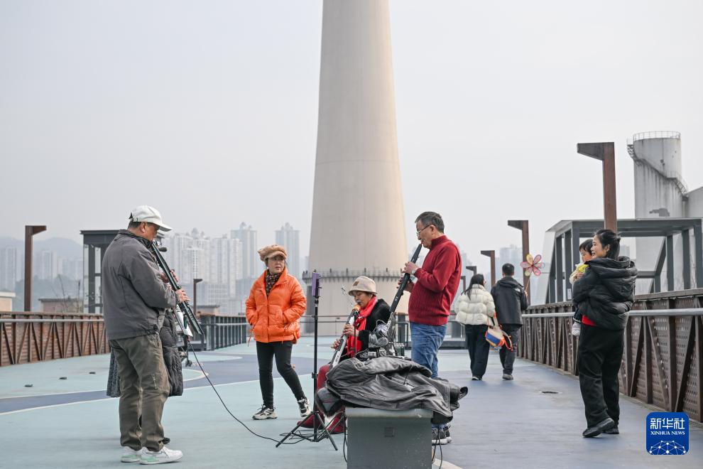 1月5日,市民在重庆九龙坡区艺术公园练习乐器。