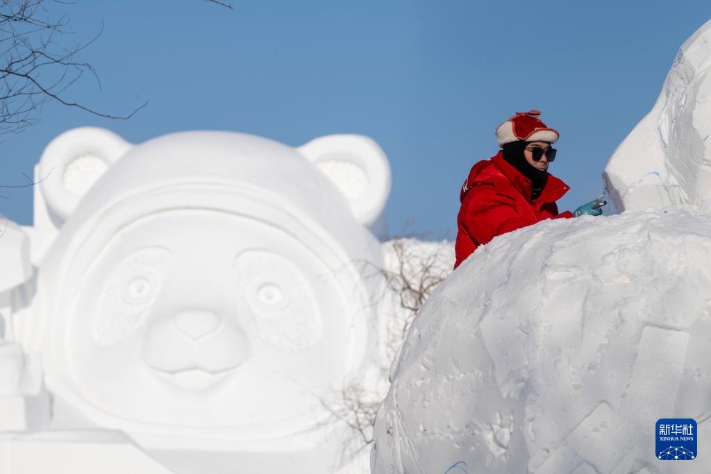 1月7日,在哈尔滨太阳岛雪博会园区,来自13个国家的25支代表队百余位艺术家在寒冬中坚持艺术创作,精雕细琢雪雕作品。