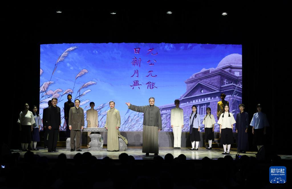 当日,2025天津戏剧节闭幕式在天津南开中学举行。天津人民艺术剧院的表演者携话剧《爱国三问》走进南开中学校园,师生在话剧表演中重温南开老校长张伯苓的“爱国三问”——你是中国人吗?你爱中国吗?你愿意中国好吗?