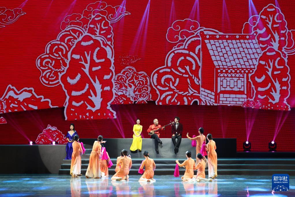 甘肃省金昌市永昌县文化馆的演员在甘肃省群众文艺展演展播活动首场演出中表演地方小曲(1月7日摄)。