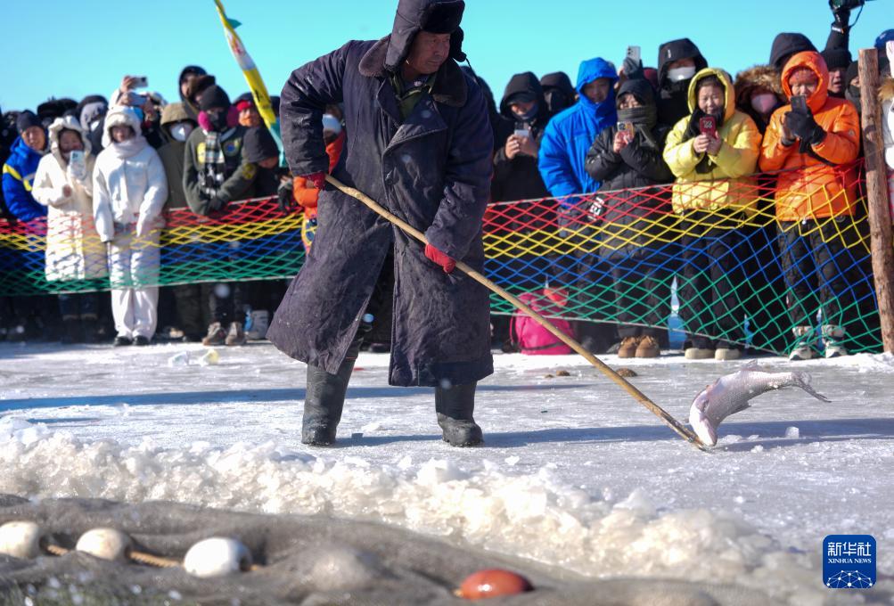 1月8日,吉林·查干湖第24届冰雪渔猎文化旅游节在捺钵广场拉开帷幕。查干湖之上,人工凿冰、马拉绞盘、冰下走网等渔猎技艺有序展开,引来各地游客。