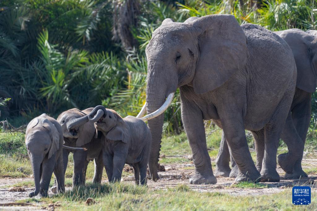 这是1月8日在肯尼亚安博塞利国家公园拍摄的大象。