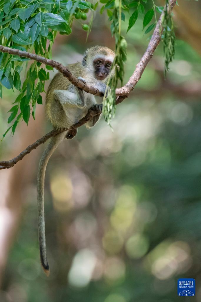 这是1月8日在肯尼亚安博塞利国家公园拍摄的长尾黑颚猴。