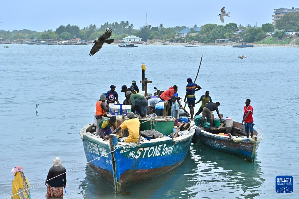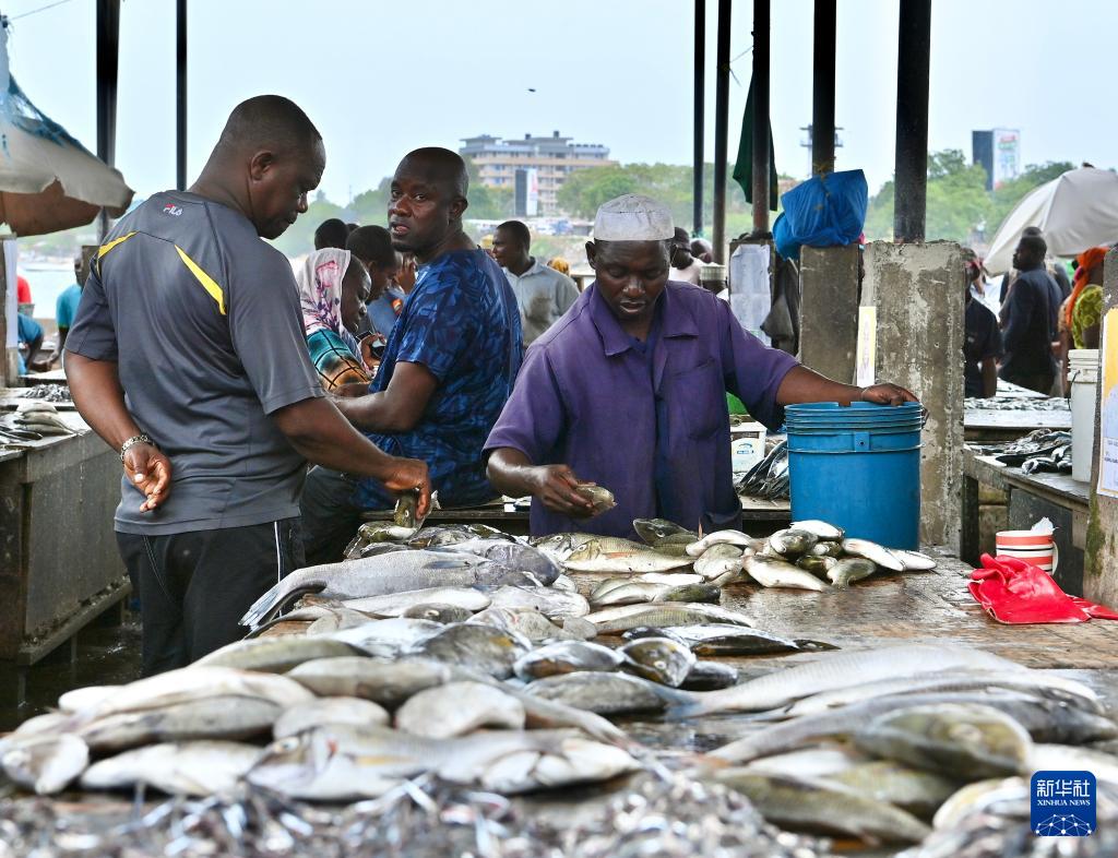 1月9日,在坦桑尼亚达累斯萨拉姆,商贩在鱼市上忙碌。
