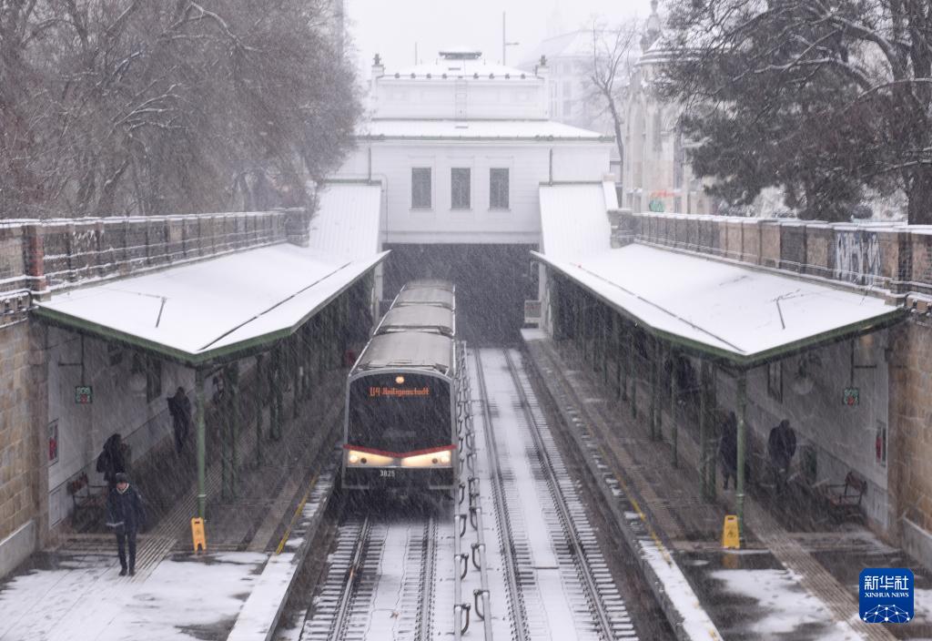 1月9日,在奥地利维也纳,一列地铁列车驶入城市公园站。