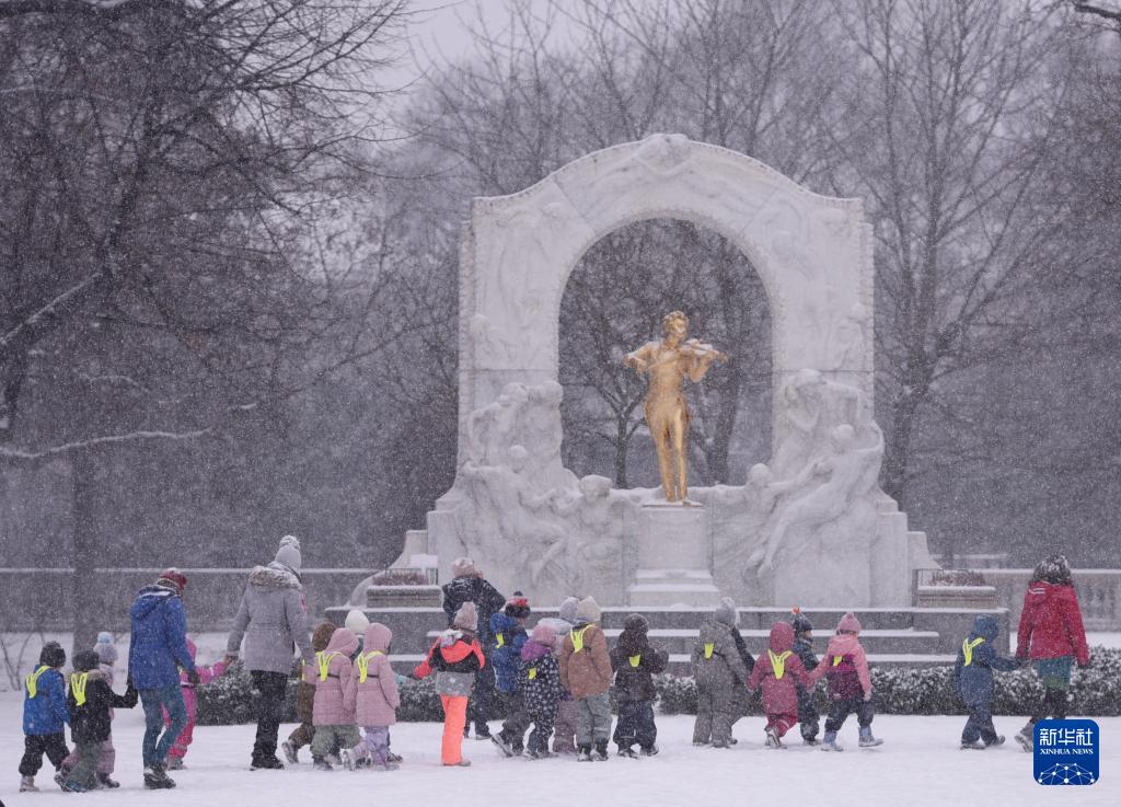 当日,奥地利首都维也纳迎来降雪。