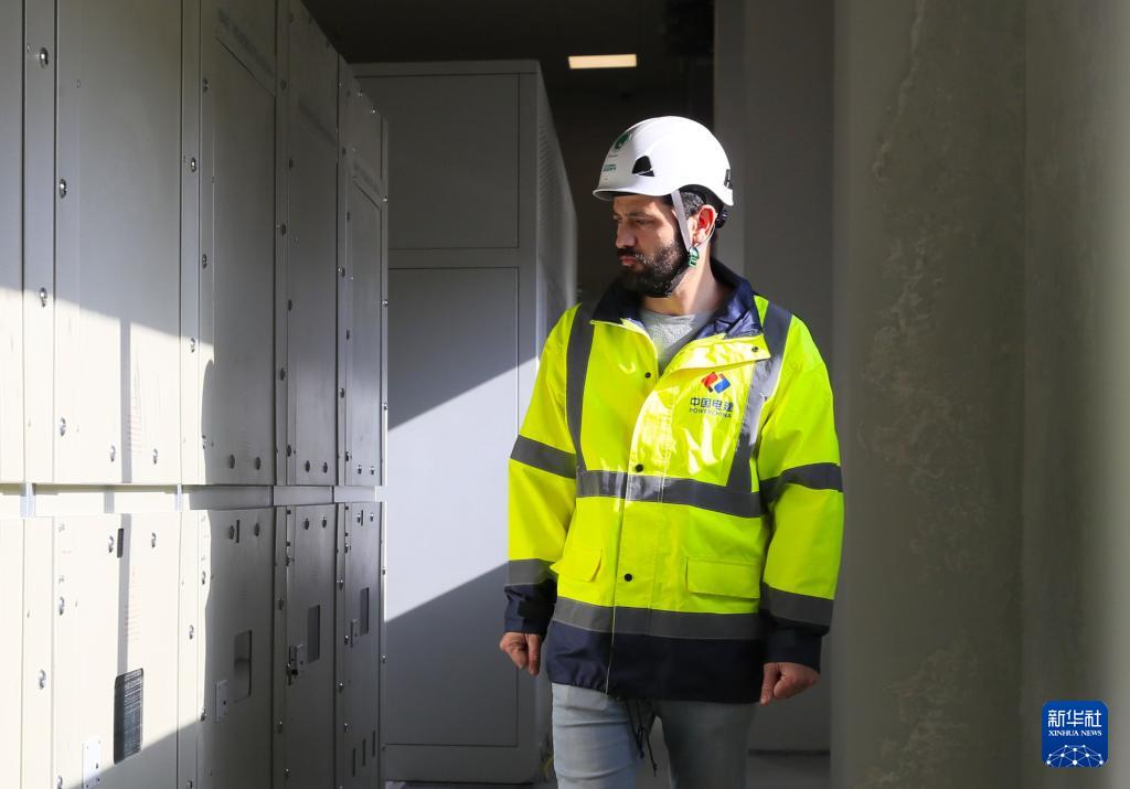 1月8日,在阿塞拜疆的希济-阿普歇伦风电项目现场,技术人员在设备机房巡视设备运行情况。