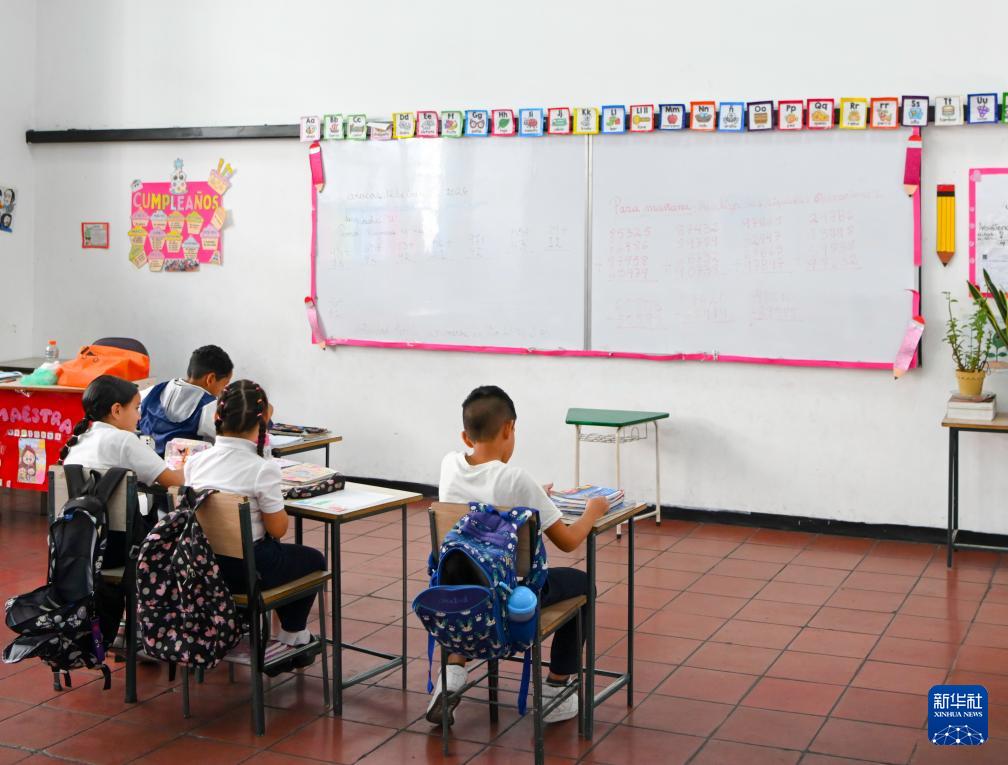 1月12日,在委内瑞拉首都加拉加斯一所公立学校,几名学生在教室学习。