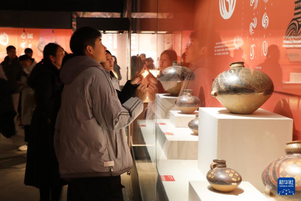 1月13日,观众在甘肃省博物馆参观“从黄河到天山——史前彩陶的西渐之路”文物展。