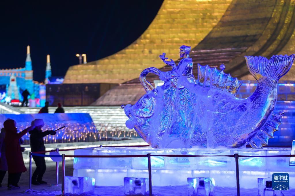 璀璨冰雕闪耀哈尔滨冰雪大世界