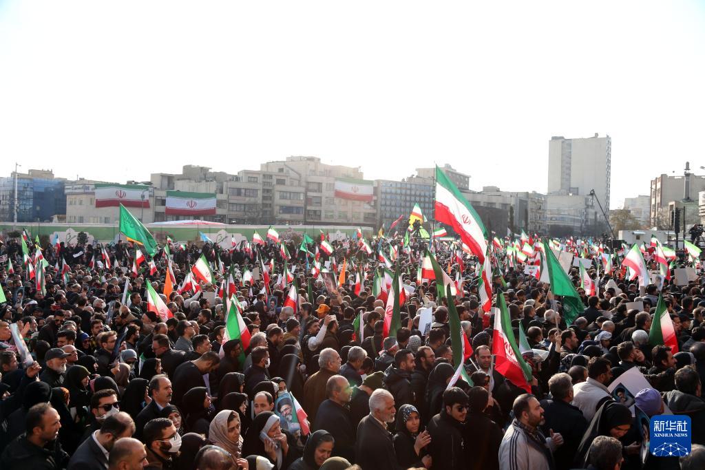 1月12日,在伊朗首都德黑兰,人们参加集会。