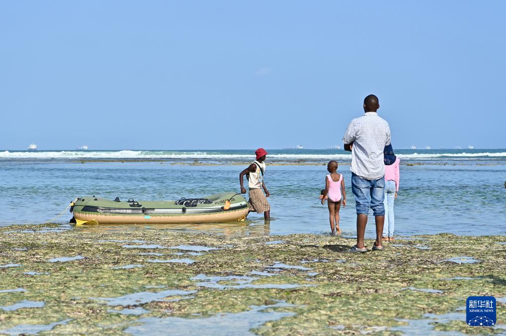 1月10日,在坦桑尼亚达累斯萨拉姆,人们在一处海滩游玩。