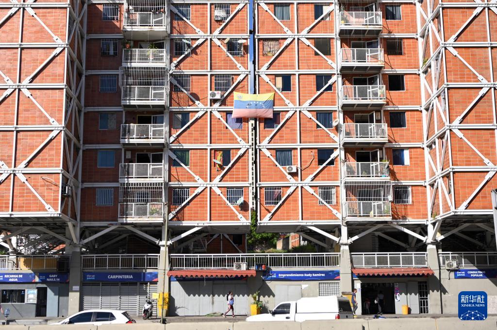 1月8日,在委内瑞拉首都加拉加斯,委内瑞拉国旗悬挂在公寓楼外。