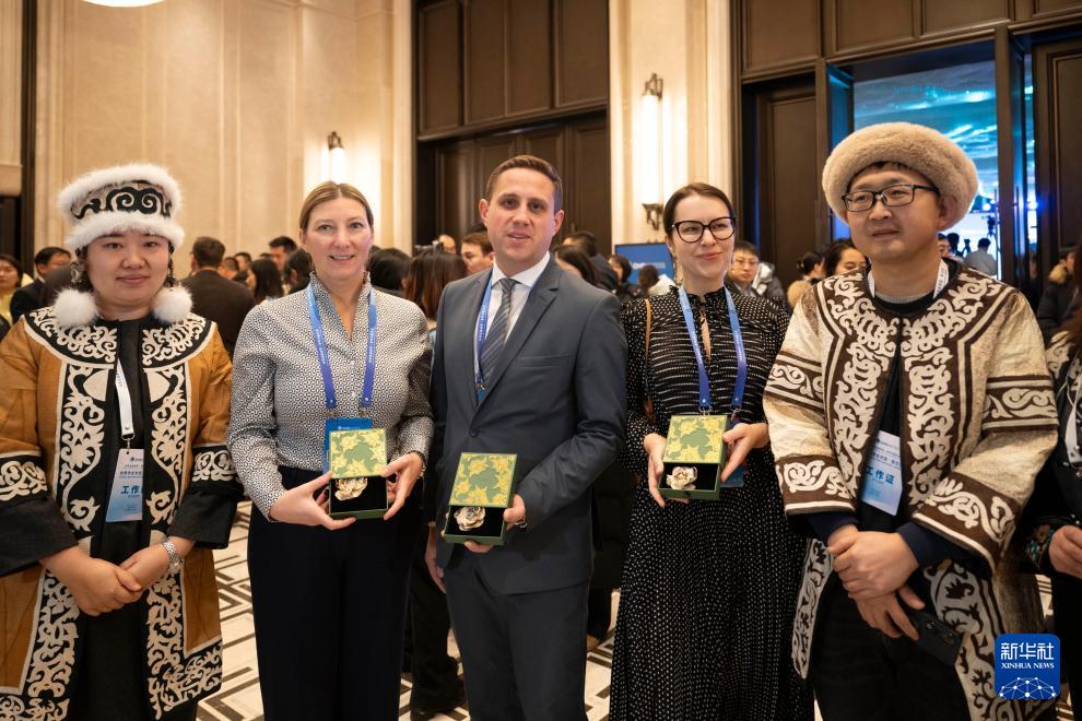 1月7日,参会嘉宾在“世界市长对话·哈尔滨”主对话活动现场合影。