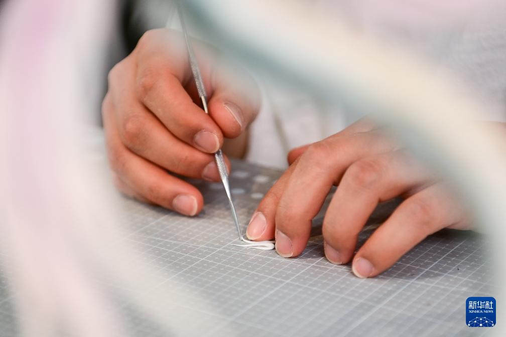 糖艺师张勃在制作糖艺装饰零部件(1月13日摄)。