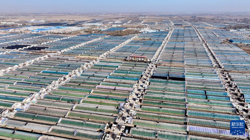这是1月15日拍摄的位于宁夏银川市贺兰县习岗镇的新平村设施园区(无人机照片)。
