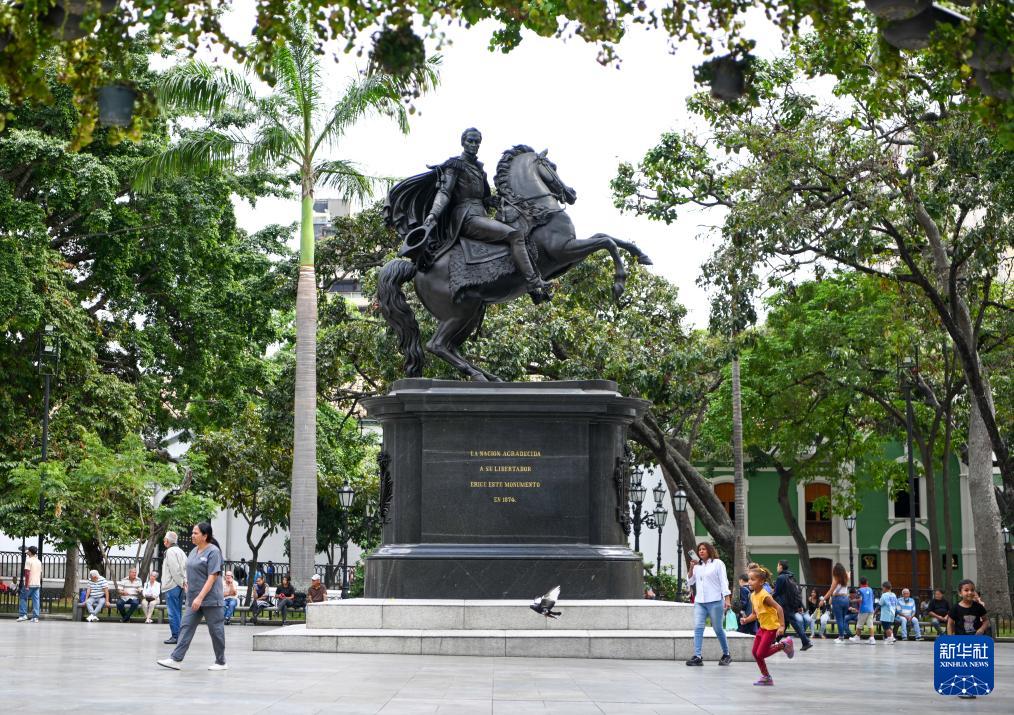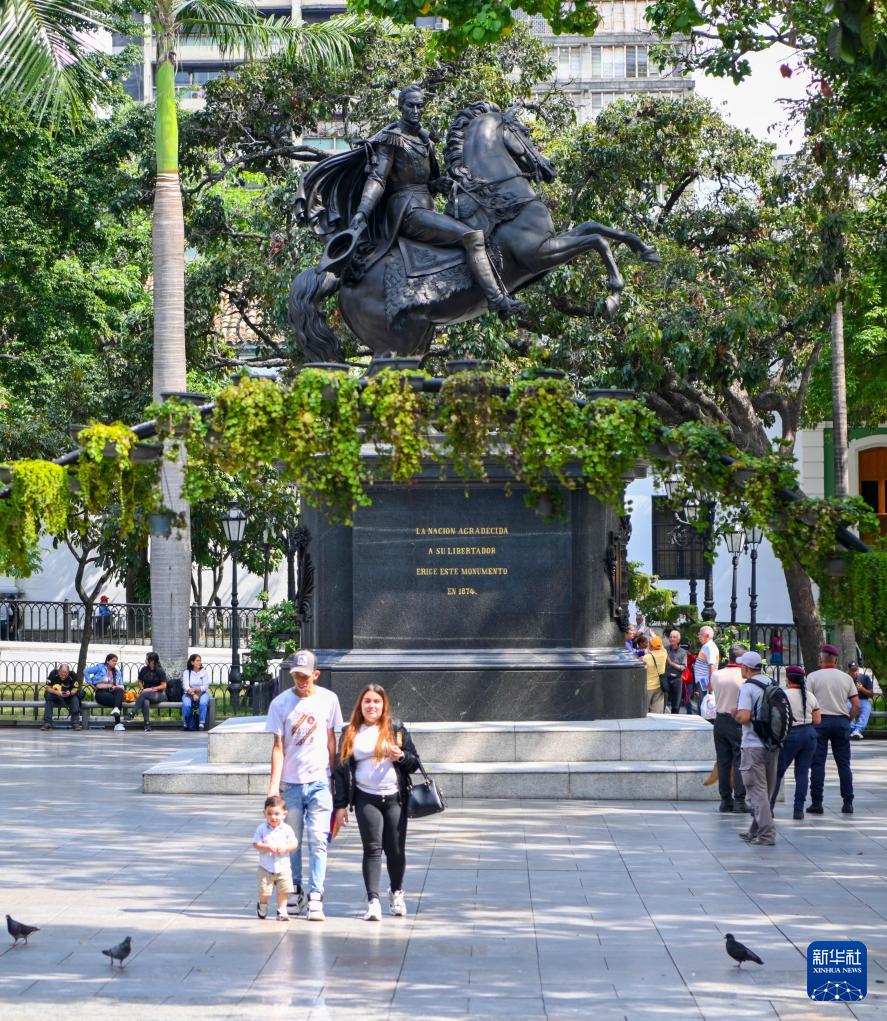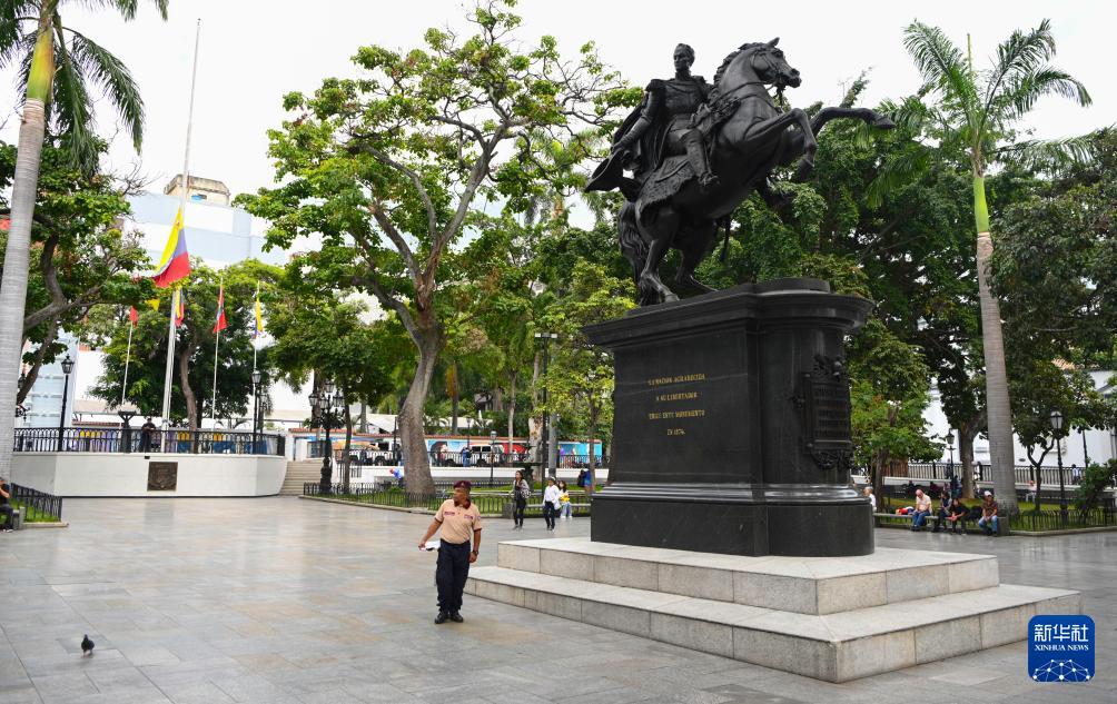 这是1月12日在委内瑞拉首都加拉加斯拍摄的玻利瓦尔广场。