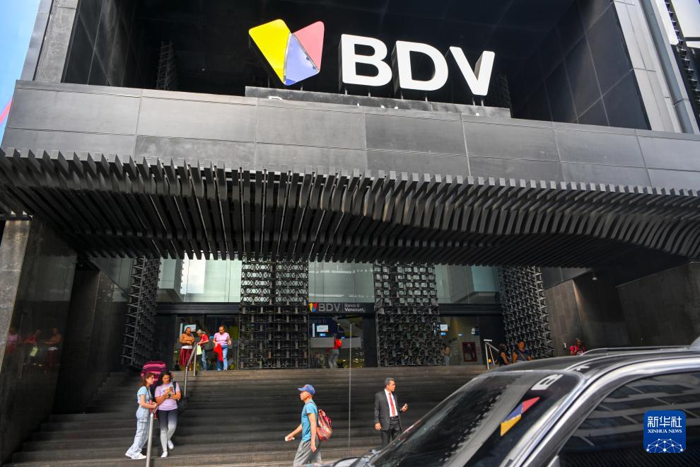 这是1月13日在委内瑞拉首都加拉加斯拍摄的委内瑞拉银行标志。