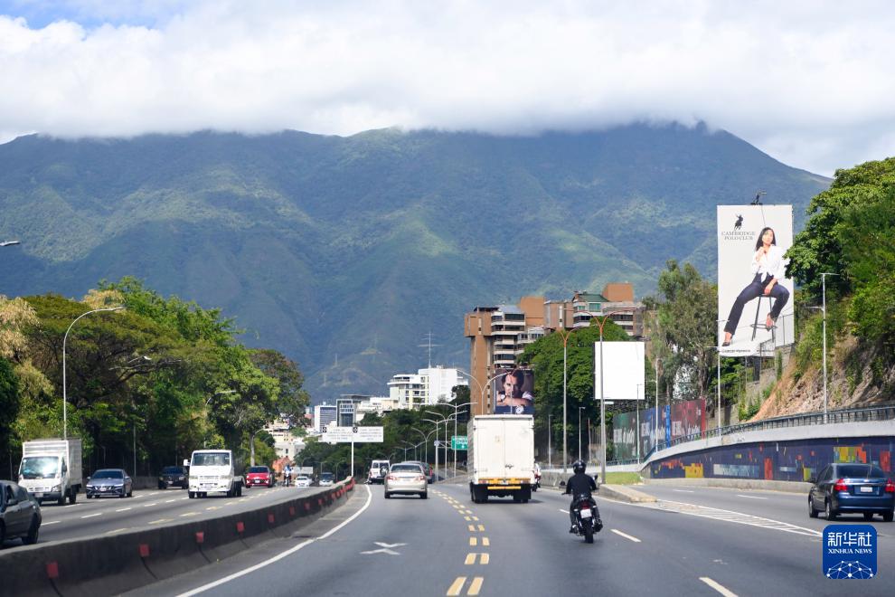 1月11日,在委内瑞拉首都加拉加斯,机动车行驶在大街上。