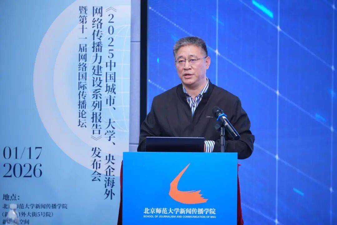 2026年1月17日下午,《2025中国城市、大学、央企海外网络传播力建设系列报告》发布会暨第十一届网络国际传播论坛在北京师范大学举办。该系列报告由北京师范大学新媒体传播研究中心、中国日报网、光明网和北京师范大学教育新闻与传媒研究中心联合发布,北师大京师书院和新闻传播学院支持。