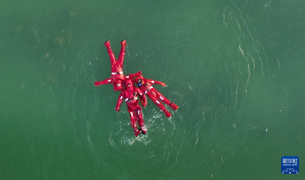 1月17日,市民在银川文旅集团览山公园体验“冰浮小龙虾”特色项目(无人机照片)。