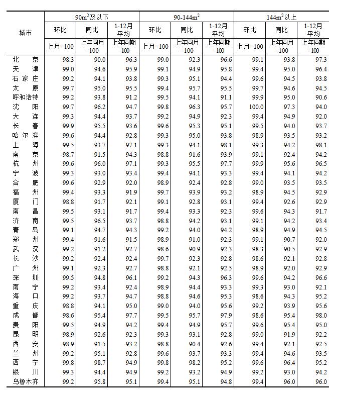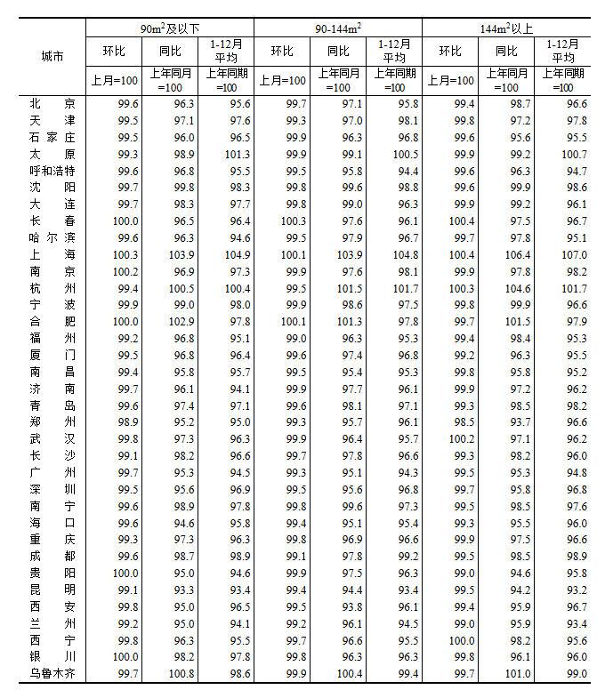 表1:2025年12月70个大中城市新建商品住宅销售价格指数