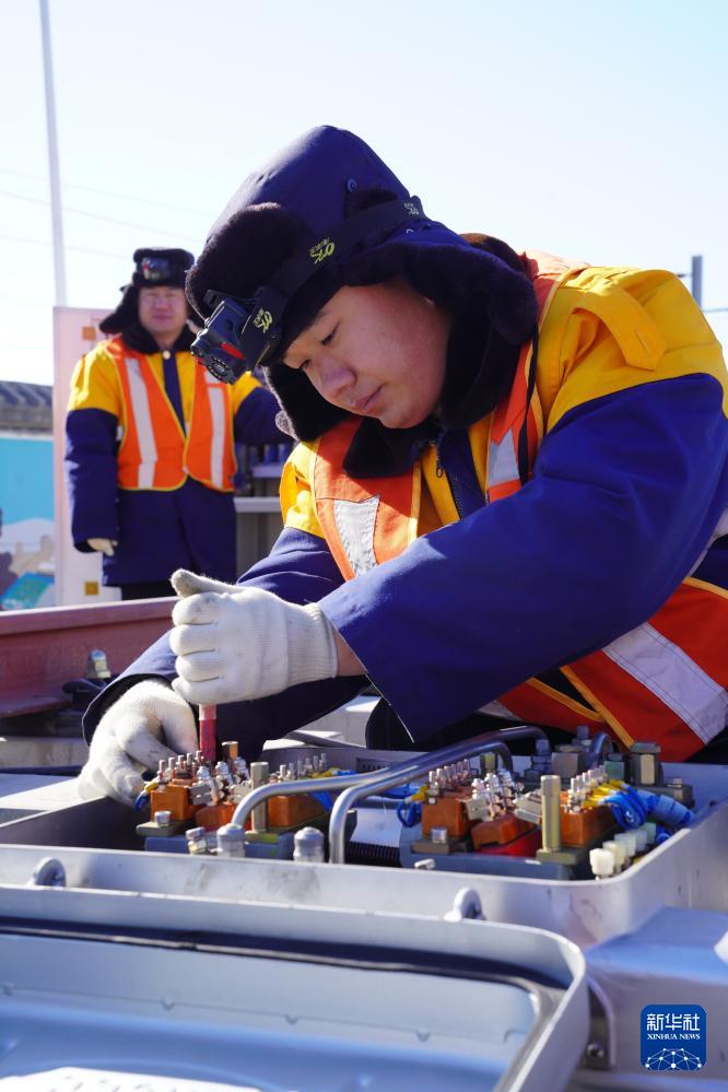 1月20日,中国铁路北京局集团有限公司北京电务段的工作人员在对转辙机进行标准化检修。