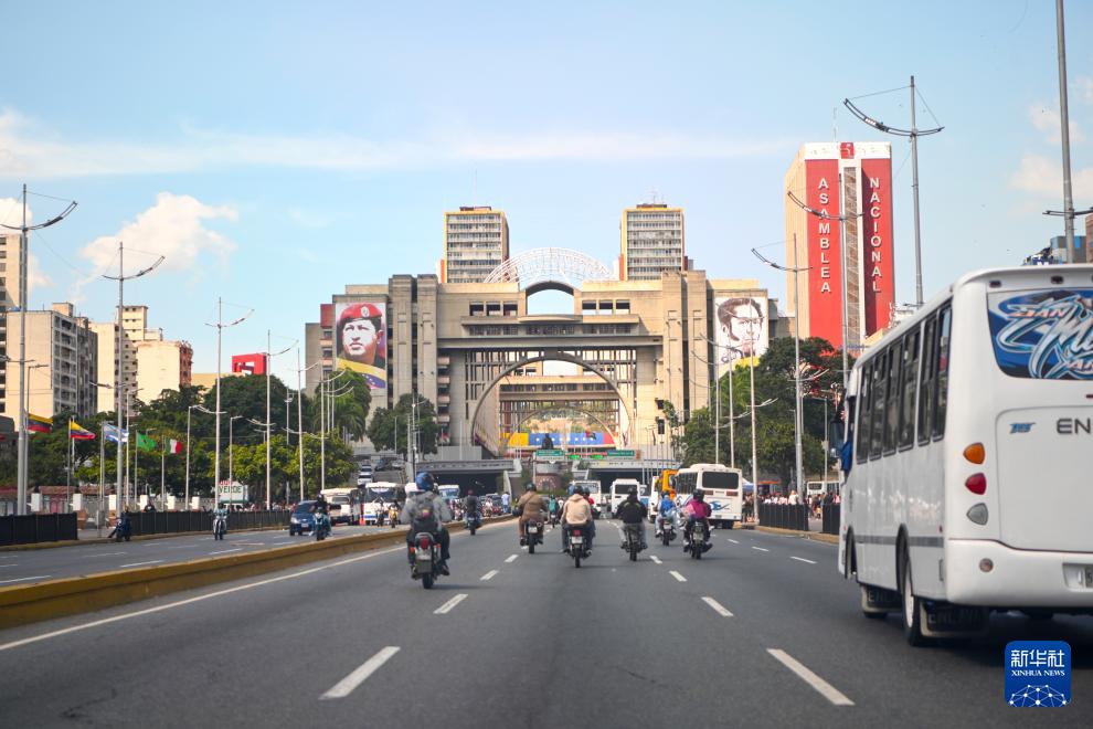 1月12日,在委内瑞拉首都加拉加斯,车辆行驶在玻利瓦尔大街。