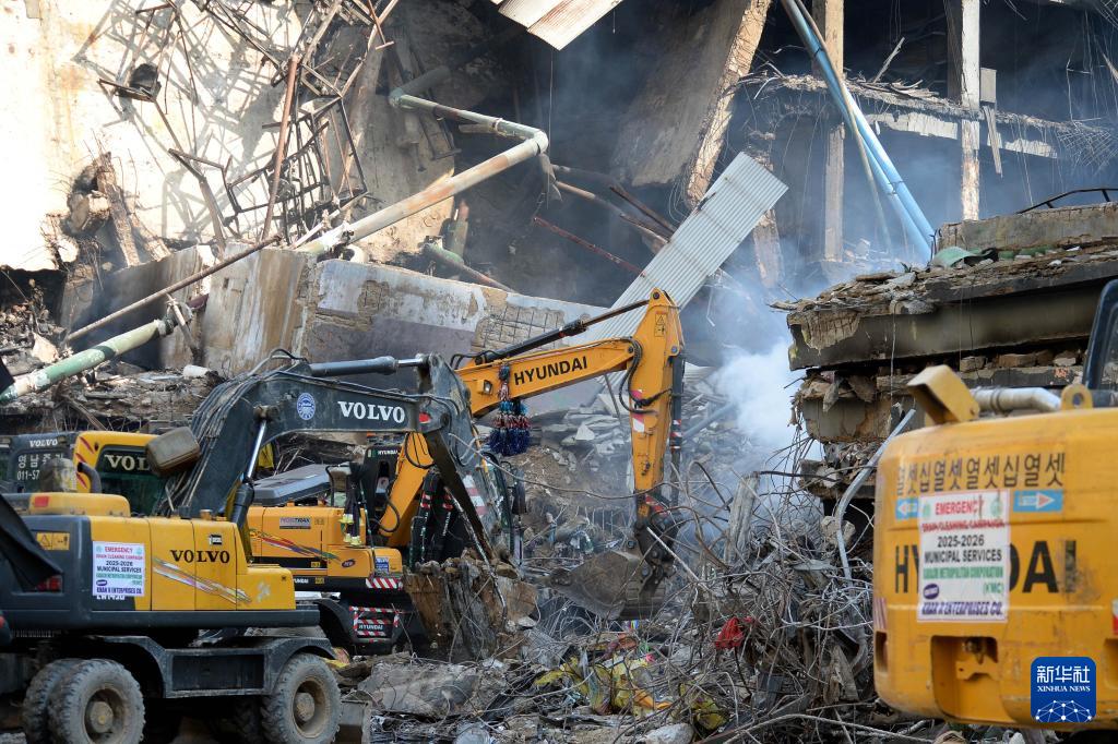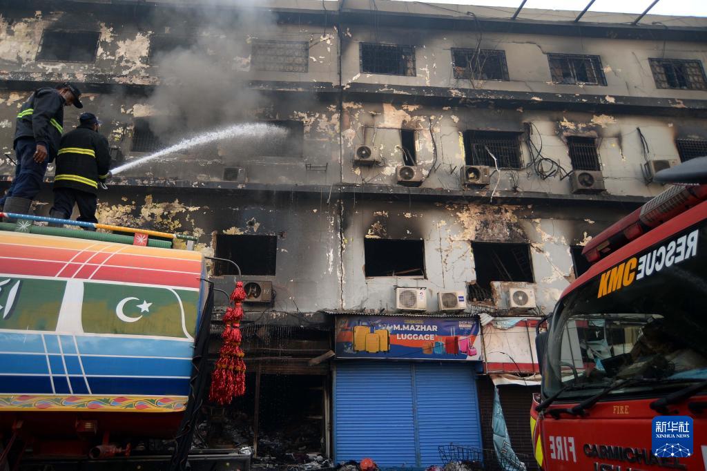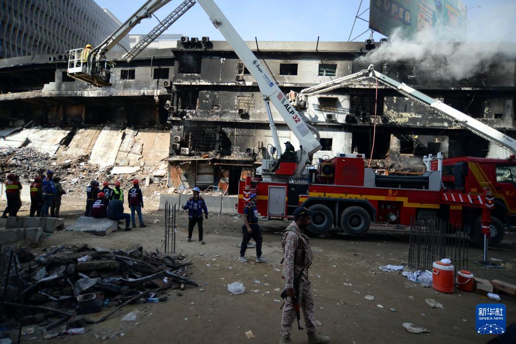 1月20日,救援人员在巴基斯坦卡拉奇的火灾现场工作。新华社发