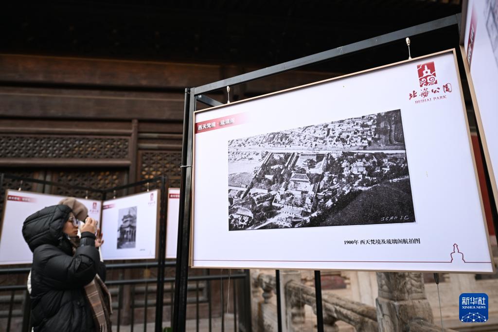 1月22日,参加琉璃阁院落腾退移交仪式的人员在北海公园“西天梵境”观看其历史照片展。