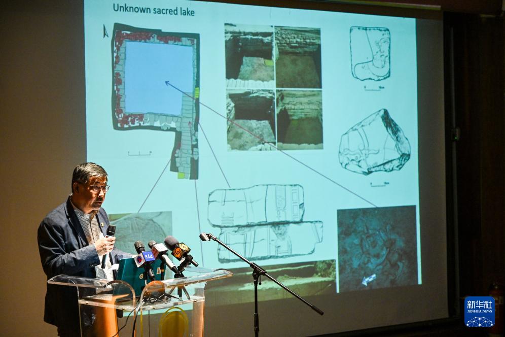 1月24日,中埃卢克索孟图神庙联合考古项目中方总负责人贾笑冰研究员介绍考古成果。新华社记者 辛梦晨 摄
