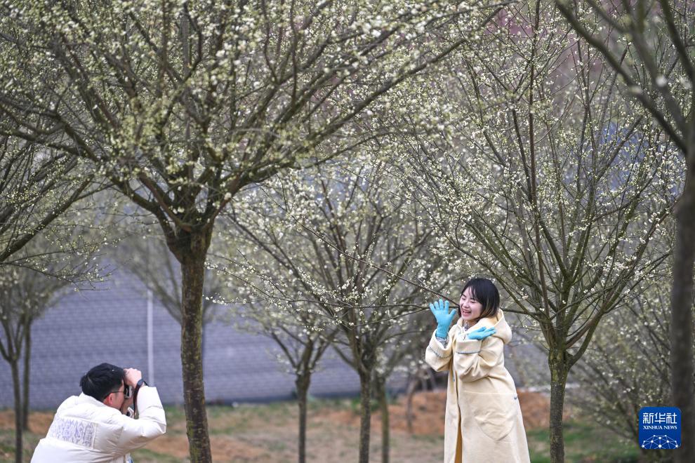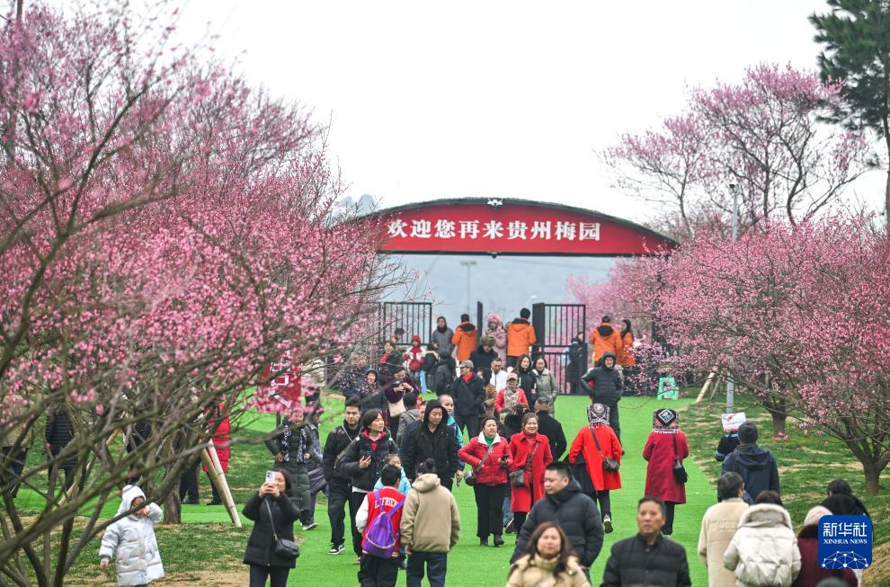 1月24日,位于贵州省贵安新区的贵州梅园正式开园,吸引众多游客前来赏梅观光。