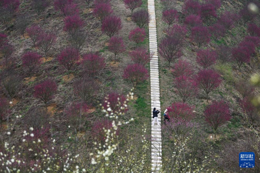 贵州梅园之前是生态脆弱的荒坡。近年来,当地通过“生态修复+产业造血”模式将其改造成梅花主题观光景区。