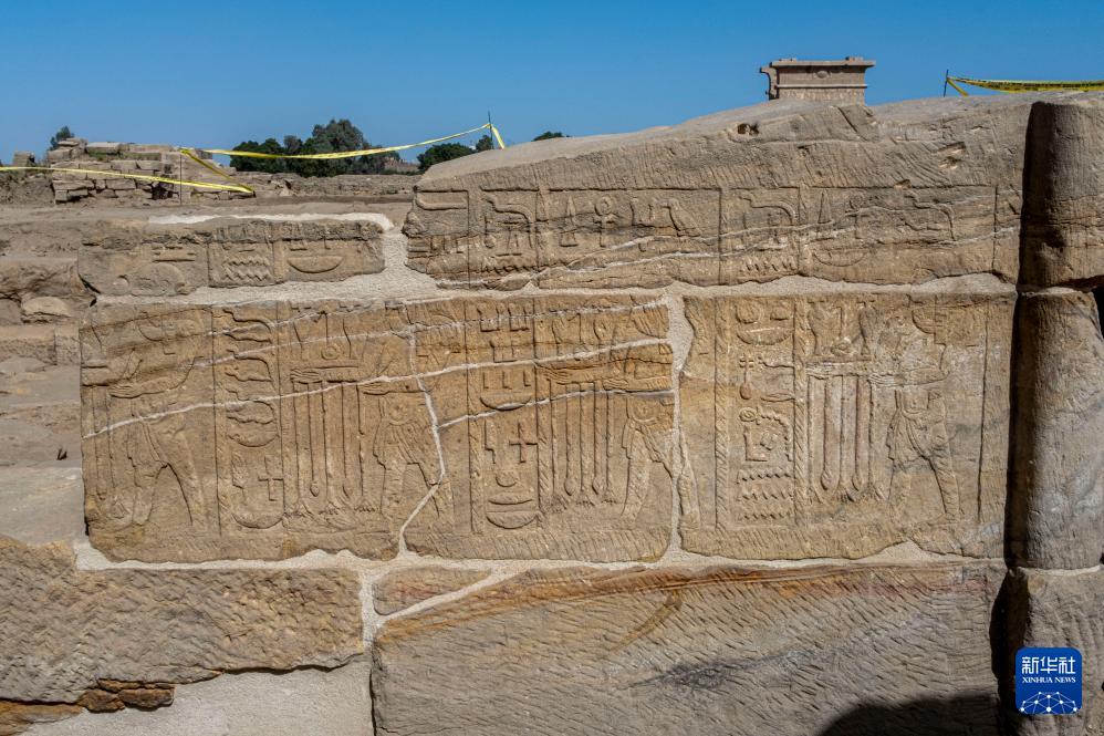 这是1月24日在埃及卢克索省卡尔纳克孟图神庙遗址区拍摄的刻有浮雕的石块。