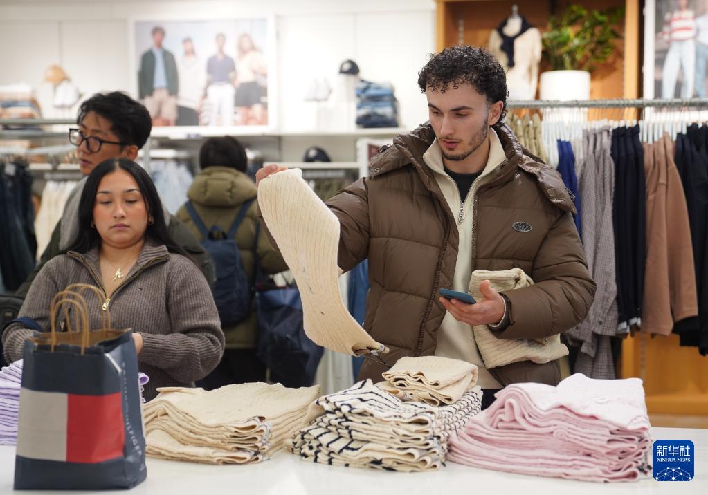 1月22日,在美国纽约一处购物中心,顾客挑选商品。