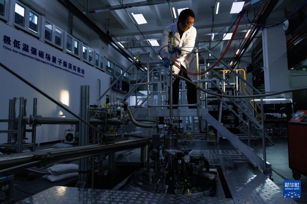 1月26日,在位于北京怀柔的中国科学院物理研究所综合极端条件实验装置极低温强磁场量子振荡实验站,实验站负责人、副研究员李岗在放置实验测量杆。
