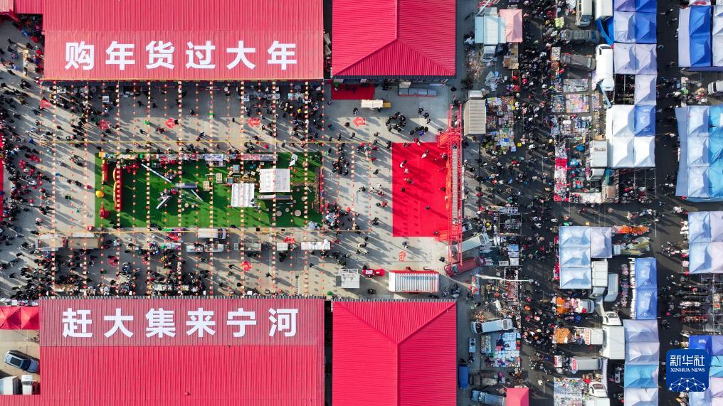 这是1月26日拍摄的天津芦台大集(无人机照片)。