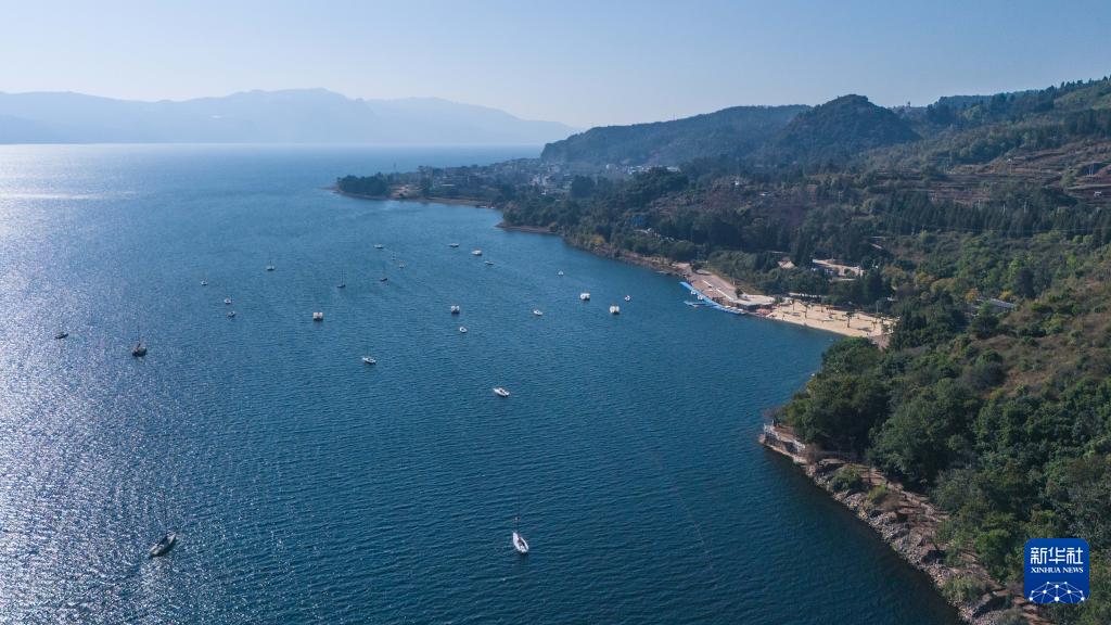 冬日抚仙湖碧波荡漾,风光宜人,吸引不少游客前来游览。