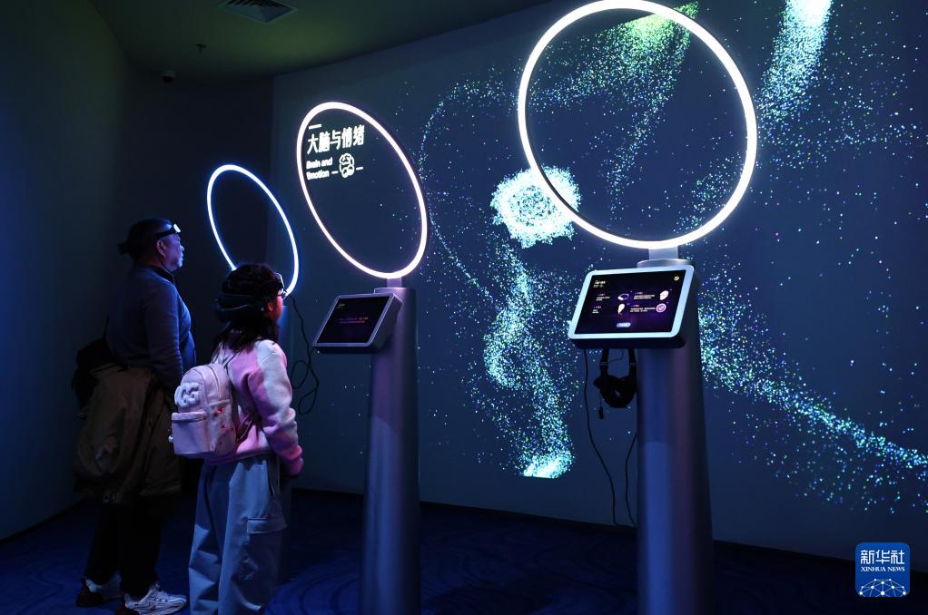 1月27日,参观者在上海科技馆“神奇的我”展区内体验“大脑与情绪”体感游戏。